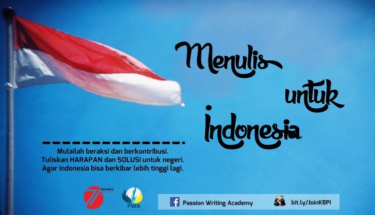 Sebagai #PassionWriter saya melihat momen ini sebagai kesempatan menarik untuk menulis. Buat kita semua, mari mulai menulis. Misalkan saja menulis harapan untuk Indonesia kedepannya seperti gerakan musiman ataupun wawancara di televisi. Nah sekarang mari lihat dari sisi lain dan buatlah lebih menarik. Coba tuliskan apa solusimu untuk Indonesia?