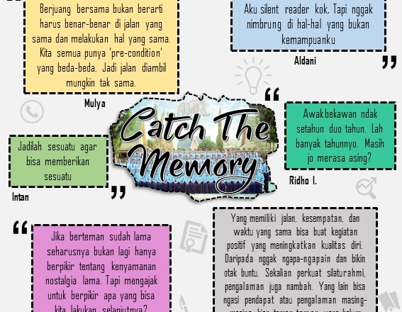 Bagi banyak orang pasti tak terpikirkan hal semacam ini. Wajar memang. Karena ketika pikiran kita diarahkan untuk selalu mencari makna, maka semesta akan mendukung untuk memberikan kita makna. Nyata adanya dan saya rasakan sendiri. Begitu pula ketika saya selalu mencari teknik dan inspirasi menulis apa. Maka lahirlah “Catch The Memory”.