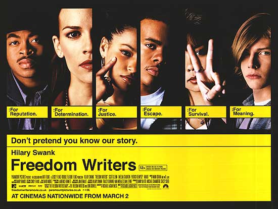 Saya selalu menyukai film yang diangkat dari kisah nyata. Freedom Writers salah satunya. Mengangkat kisah seorang lulusan hukum yang ingin menjadi guru. Tapi bagi saya, dia bukan hanya guru. Tetapi juga pendidik. Ya ada sedikit perbedaan bagi saya pribadi. Dan perjuangannya sungguh sangat inspiratif. Dia bernama Miss Gruwell yang mengajar sekolah menengah di Long Beach, California.