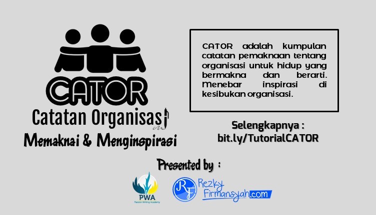 Ketiga dan yang terpenting, saya ingin membuktikan bahwa organisasi bukanlah alasan untuk pembenaran akan segala kesibukan. Ada yang beralasan nilai turun, kuliah telat, sering bolos, hidup keteteran dan lain sebagainya karena kesibukan organisasi. Dengan CATOR saya ingin membuktikan bahwa itu semua bisa teratasi. Dan yang paling ingin saya buktikan adalah, kesibukan organisasi bukanlah alasan kamu tidak bisa menulis.
