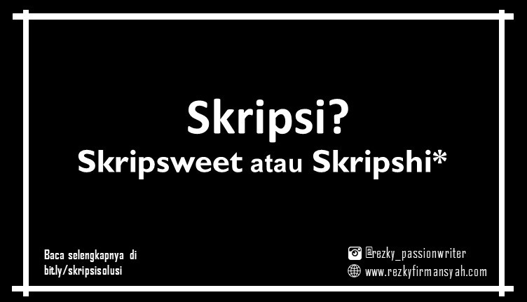 Nah sekarang kepikiran? Skrispi akan menjadi skripsweet ketika dijalani dengan hati dan mampu menjadi solusi. Tapi skripsi akan menjadi skripshi* jika tidak dimaknai dan hanya sekedar lulus.
